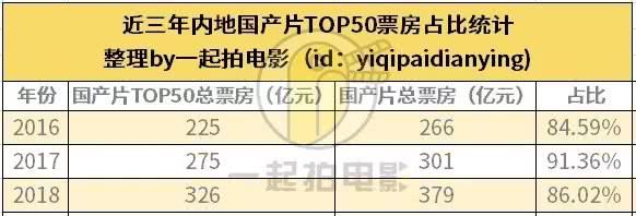 拍sir对近三年国产片票房前五十的影片进行了统计后发现,每年影片票房前五十的总票房在国产片总票房的占比已高达90%上下。这也意味着虽然国产片每年上映的影片已经达到了三四百部,但真正对票房产生贡献的票房也不过50部影片,更多的影片在票房产出上微乎其微,对国产电影的总票房的产出并没有太大的作用。