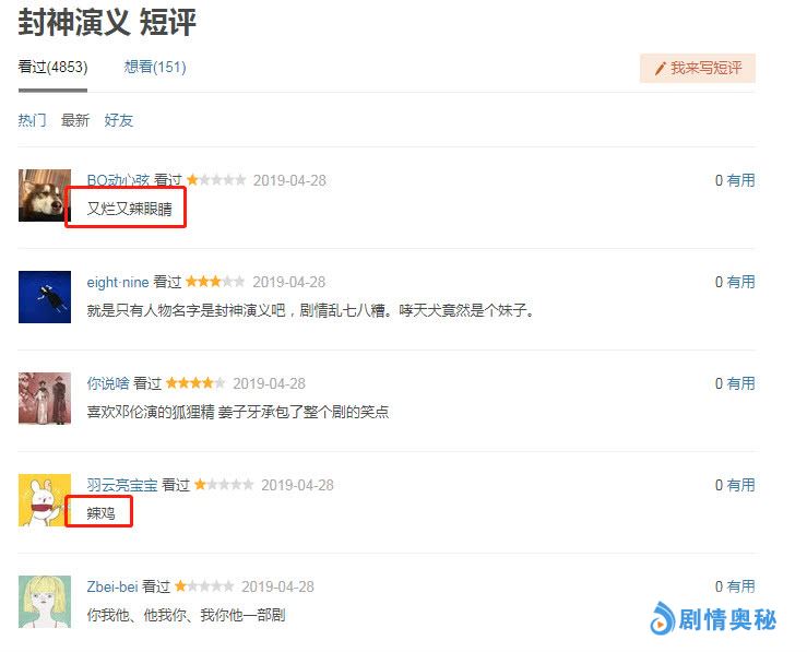 以前是任何职场戏都是谈恋爱,后来是任何古装戏都是谈恋爱,现在开始把魔掌伸向封神这一经典了,都2019年了,国产剧真的能拿出手的少得可怜。乱撞色的服装、无脑的编剧只想给0星差评,前一秒苏护送轩辕剑去朝歌,下一秒却说留给杨戬保护冀州,神一样的转变只佩服编剧的脑筋急转弯,虽说不要求跟温碧霞、傅艺伟等旧版的一模一样翻拍,但至少你台词、剧情逻辑方面要走点心啊!