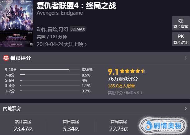 最近几天票房市场相当火爆,随着《复仇者联盟4》强势来袭,引发了全民观影热潮,目前累计票房超过了恐怖的23亿!