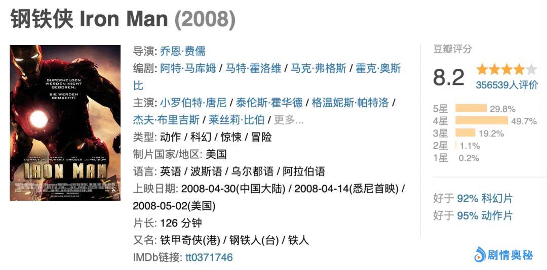 我觉得,即便如今再看这部《钢铁侠》,会觉得有遗憾,最后的大战也有点弱,整体的制作水平,也比最新几部低了不少。却仍认为,这部电影是可以在我的漫威系列进入全三的。