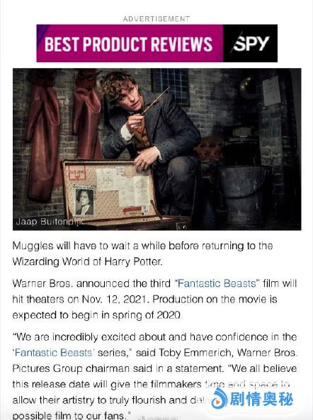 据悉,由J·K·罗琳创作故事的《神奇动物3》原定今年7月开机,后华纳推迟时间,预计明年春天开拍,华纳主席托比·艾默里奇声明称:这个档期是为了给电影人时间和空间,来为影迷做出最好的电影。