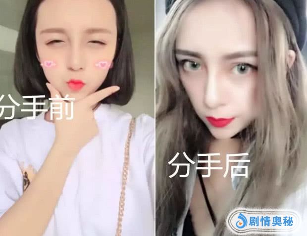 分手前看的样子,颜值就是非常高的,拍照的时候还用的是素颜,并且还有一个齐刘海看上去比较可爱比较清纯,而在分手之后不仅学会了化妆,就连头发的造型都发生了很大的改变,不过眼神中却带了一丝的伤感,感觉和之前的变化还是非常大的