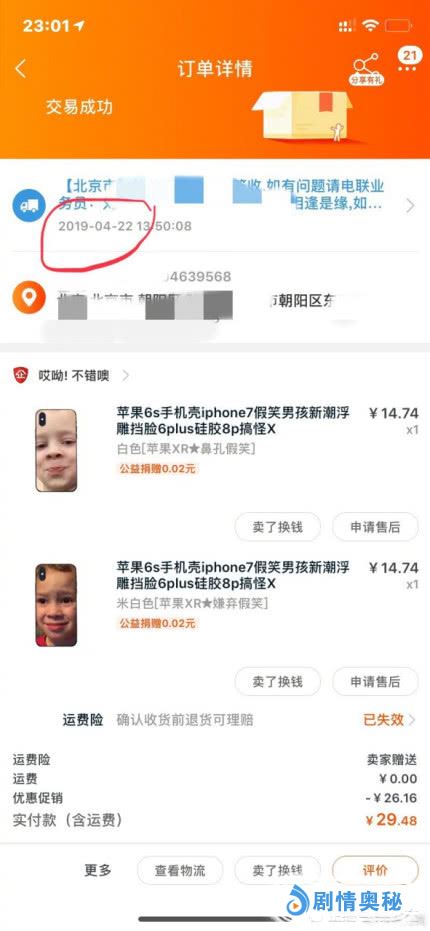 还特意晒了手机的订单