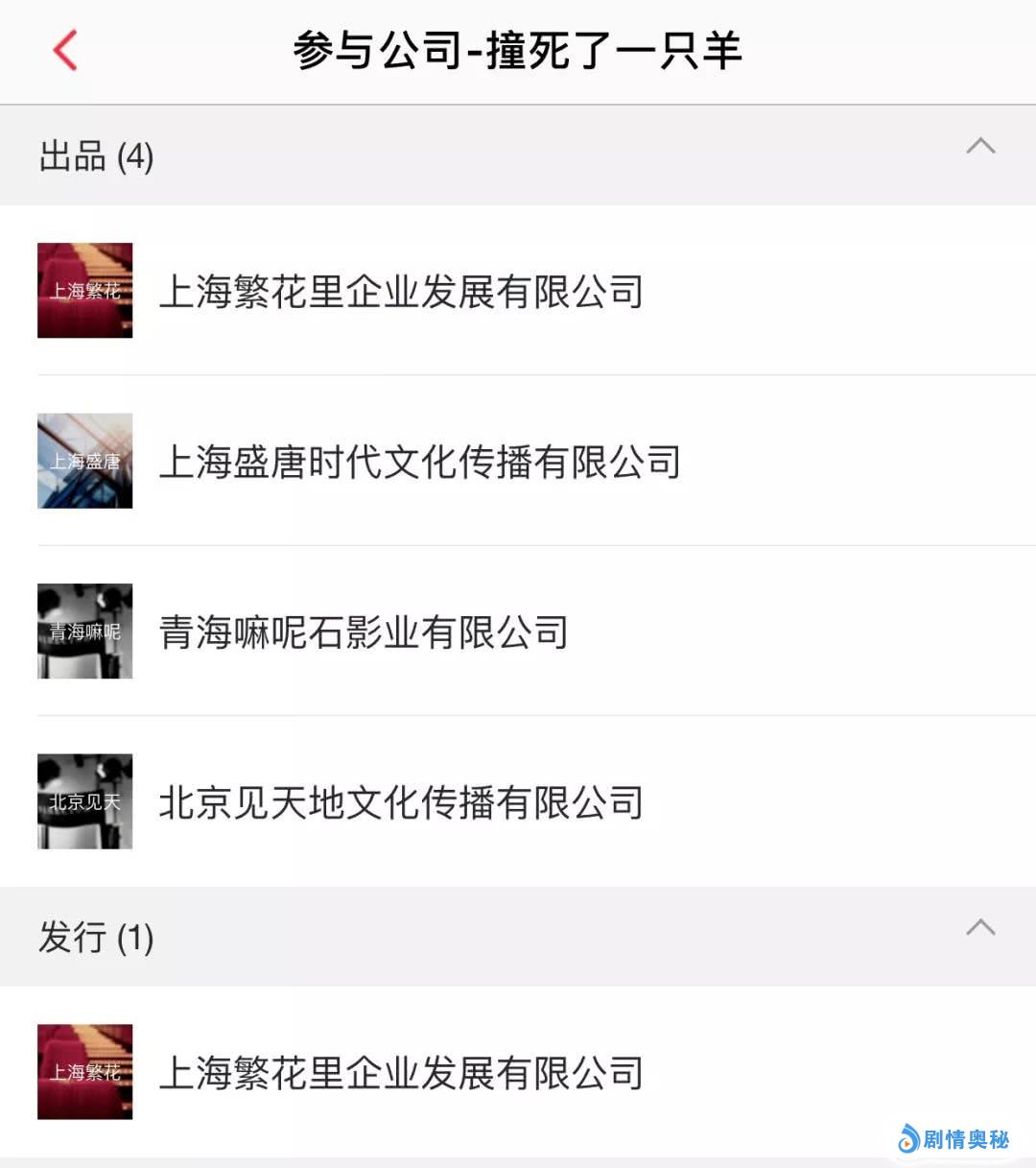 参与《撞死了一只羊》出品、发行的公司情况