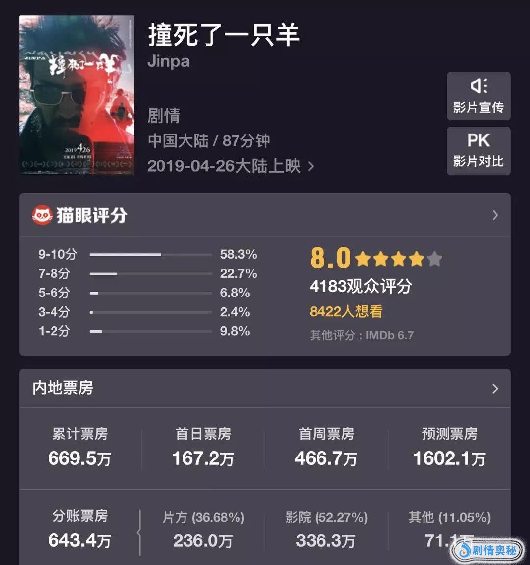 《撞死了一只羊》的预测票房已上升到1600万
