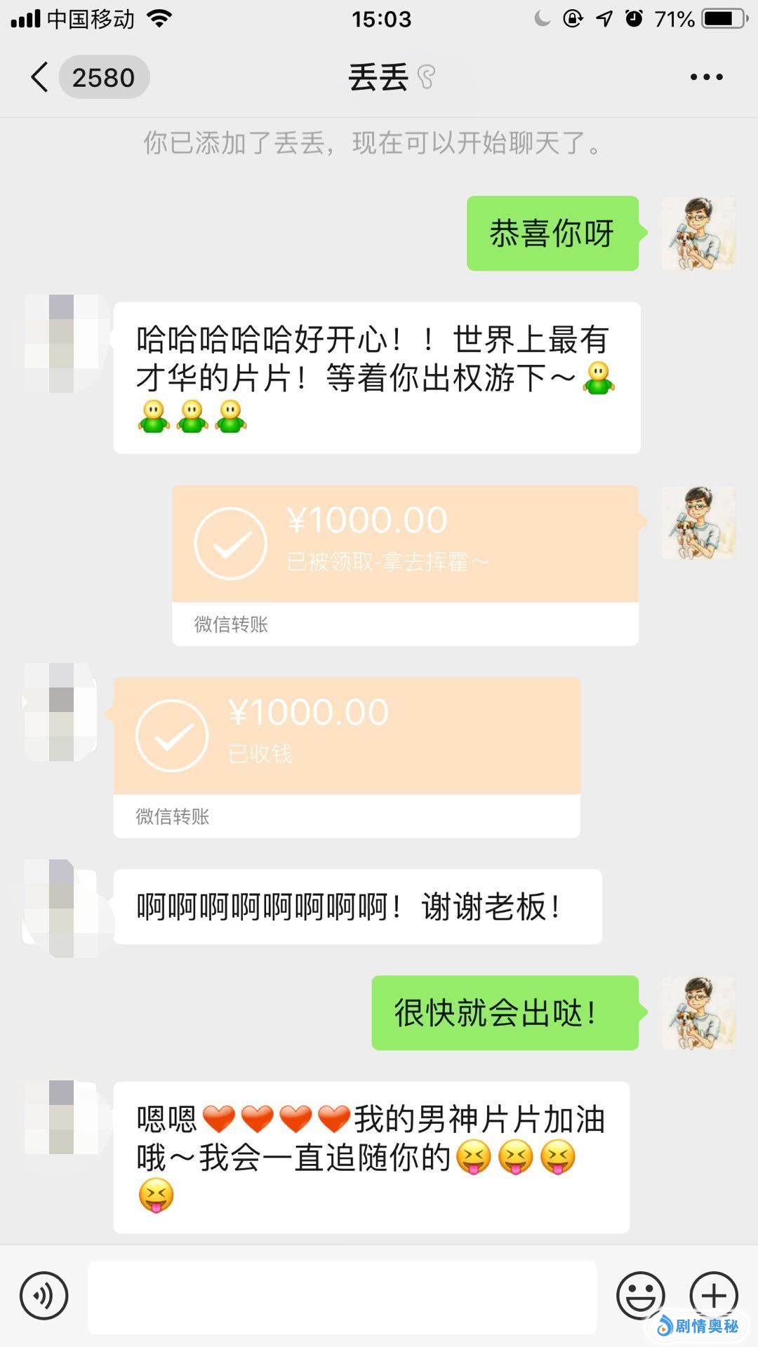 首先当然是中了1000元现金的锦鲤啦