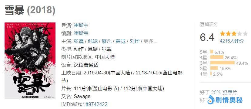 《雪暴》是典型的叫好不叫座,豆瓣6.4分,是在映大片中评分最高之一,可是它产出的票房却不相符,倪妮张震尴尬了,片中一众巨星联手也没能扛起票房。全民假期单日票房都跌破400万元,场均上座率又那么低,该片后面票房还有机会吗?这部警匪片有点拖沓,说商业不商业说文艺又不文艺,廖凡演技很精湛,但他不是扛票房类型的演员。