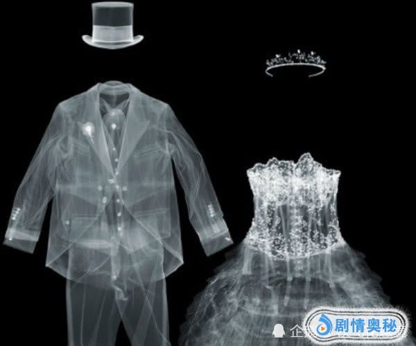 其实这些都不管啥,还有衣服也可以照X光,这是一对情侣礼服,在X光下也是透明的,女生礼物的是半透明的。可见还是非常保守的,女生穿了也比较安全了!只是很多人都没想到衣服也能照X光,很多网友纷纷表示希望自己能拥有一双透视眼,原来是这样的作用啊!
