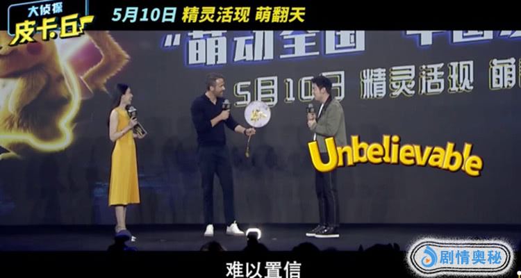 《大侦探皮卡丘》“萌动全国”北京发布会上,瑞安·雷诺兹、雷佳音首度同框,两位一见如故畅聊神奇的皮卡皮卡效应,还一起cos了放电wink的皮卡丘。雷佳音还准备了一份惊喜礼物送给瑞安,表示“我绣的,三天三夜没睡觉”。 同时,他还一秒切换英语模式,自夸“Amazing”、“Unbelievable”!瑞安听后,脑洞大开的问道:“是内衣吗?”雷佳音妙答:“ 如果喜欢的话,回去也可以缝在内衣上。”两人一捧一逗,引发全场爆笑。