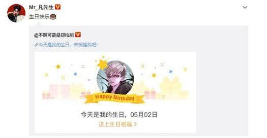 5月2日也是黄子韬26岁的生日,当天下午,吴亦凡转发了黄子韬的生日提示,祝福他“生日快乐”,还配上了生日蛋糕的表情。吴亦凡、鹿晗和黄子韬都是当年韩国组合EXO的中国籍成员,估计鹿晗稍晚也会祝福黄子韬生日快乐。