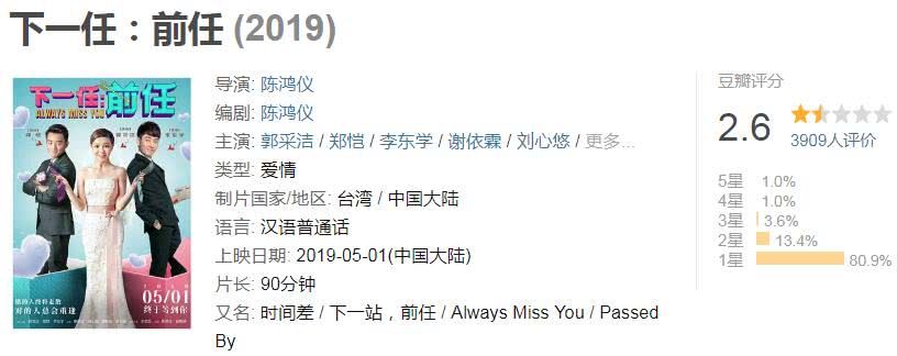 新片《下一任:前任》票房又爆了,这次还是在《复仇者联盟4》眼皮底下分得一杯羹,郑恺果然很旺票房,又一位新生代巨星诞生。该片是由郭采洁,郑恺,李东学,谢依霖等主演,讲述了“得罪”爱神的女孩林心恬从小到大一直情路坎坷,总是将现任变前任,与真爱频频错过,最终在完美情人吾川和初恋男神黄克群两位追求者中抉择,找到真爱的故事。