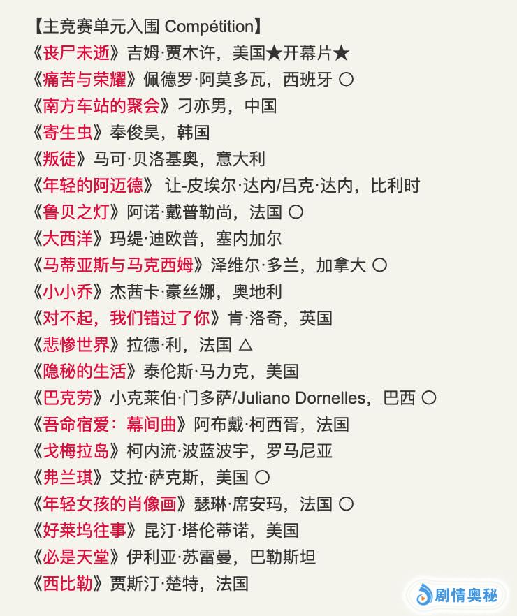 这样的话,本届戛纳电影节的主竞赛单元候选影片一共是21部,其中有五个金棕榈的得主回归,有八个导演是首次入选主竞赛,还有一部处女作,而中国导演刁亦男执导的《南方车站的聚会》也入围了片单。