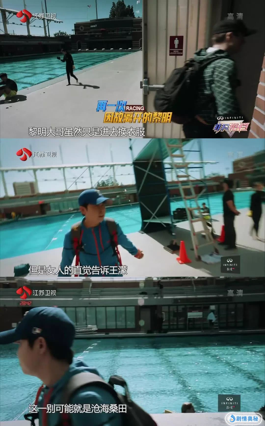 他俩遇到一个跳水任务,黎明自告奋勇去换衣服。