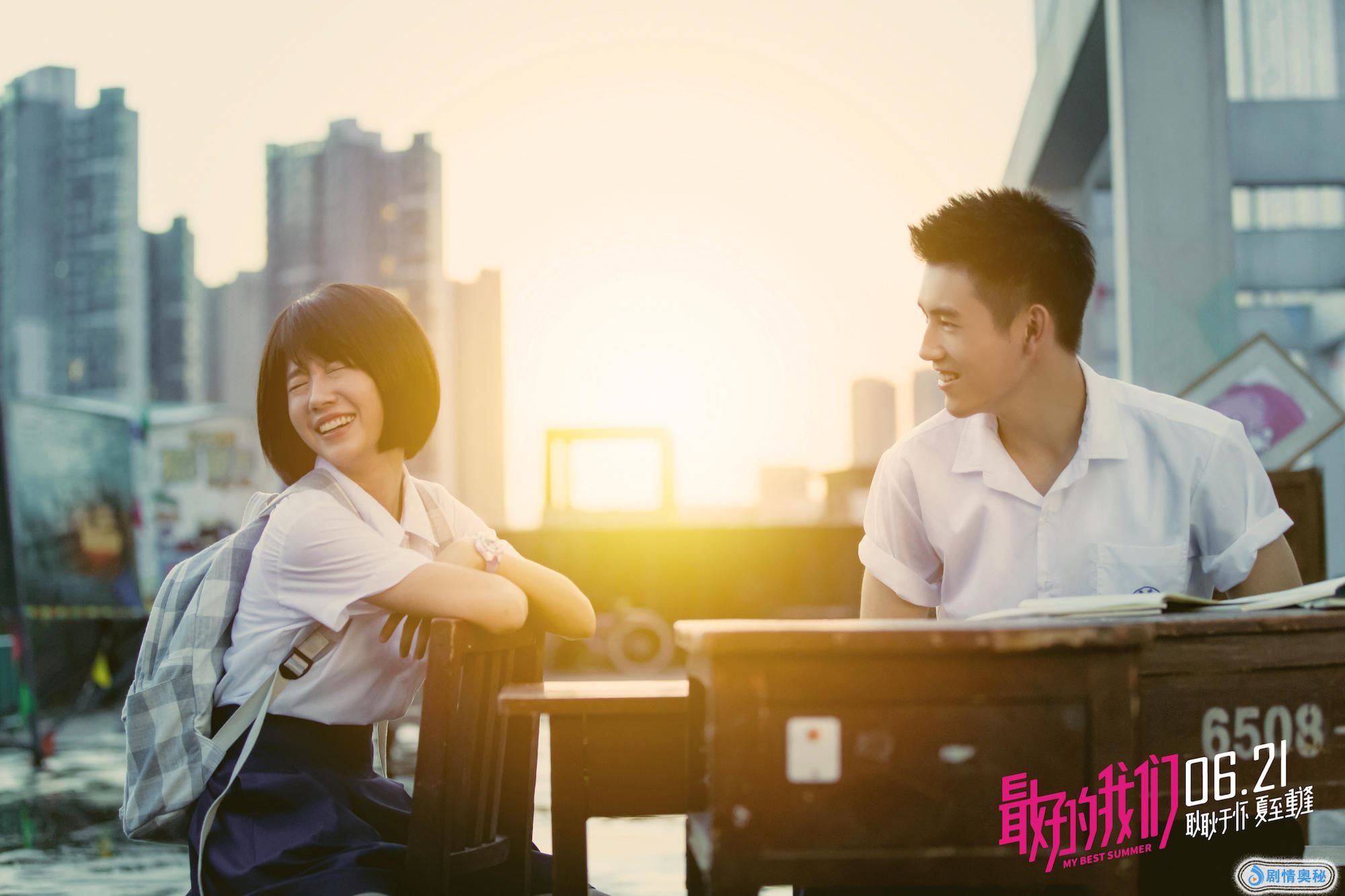 在电影《最好的我们》此次发布的“天台”版主题剧照中,陈飞宇认真帮何蓝逗补习功课,学习之余,两人开心地嬉闹。细看之下,在何蓝逗侧头大笑之时,陈飞宇带有笑意的目光并未从她身上移开。天台成为耿耿余淮收藏青春心事的地方。剧照中的文案也为两人的懵懂蒙上了一层暖暖的甜意:“笔记本的注解,是我们交换的第一个秘密”、“安静的注目,是我们第一次互相倾诉的衷情”。