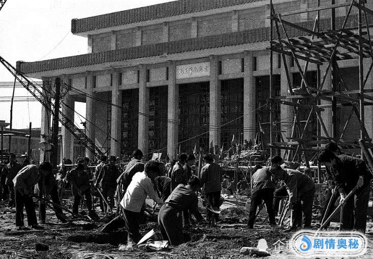 1977年,全国各地的群众代表来到毛主席纪念堂施工现场义务劳动。