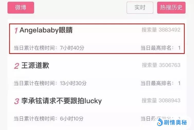 在榜时间最长的话题却有些跑偏——“Angelababy眼睛”。