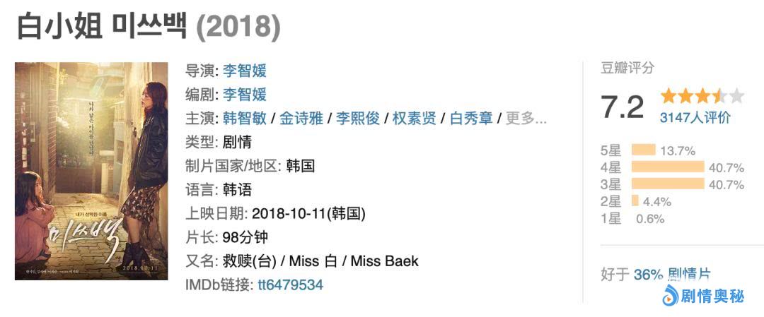 在前几天的韩国百想艺术大赏上,小众影片《白小姐》拿到了影后、最佳女配角、新人导演几项大奖。