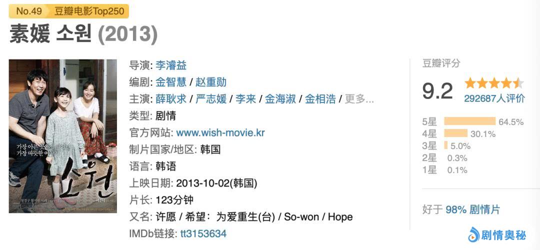 这部电影不但在韩国票房大热,在内地也颇受欢迎,豆瓣评分9.2分,参与评价人数近30万,也是热门人气高分片了。