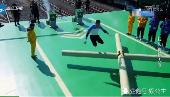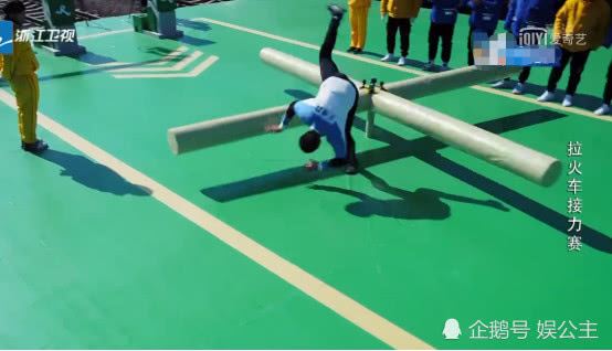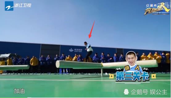 这一期中上来就是一个体力活,又给跑男们设置了一个接力又晕头转向的游戏。这个像风车一样转的四根柱子,原本是让跑男们转着圈跑的,结果王彦霖却是又蹦又跳,不是站在上面就是骑在上面,肯定是耗时了不少!