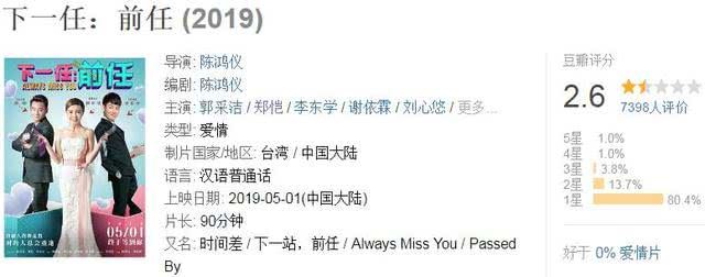 而五一档的几部华语片票房惨败,备受关注的《下一任:前任》至今未能破亿。口碑方面华语片更是惨不忍睹,《悟空奇遇记》豆瓣几乎清一色的一星,十分尴尬,《下一任:前任》豆瓣分更是低至2.6,刷新了近期华语片口碑下限,太悲剧了!