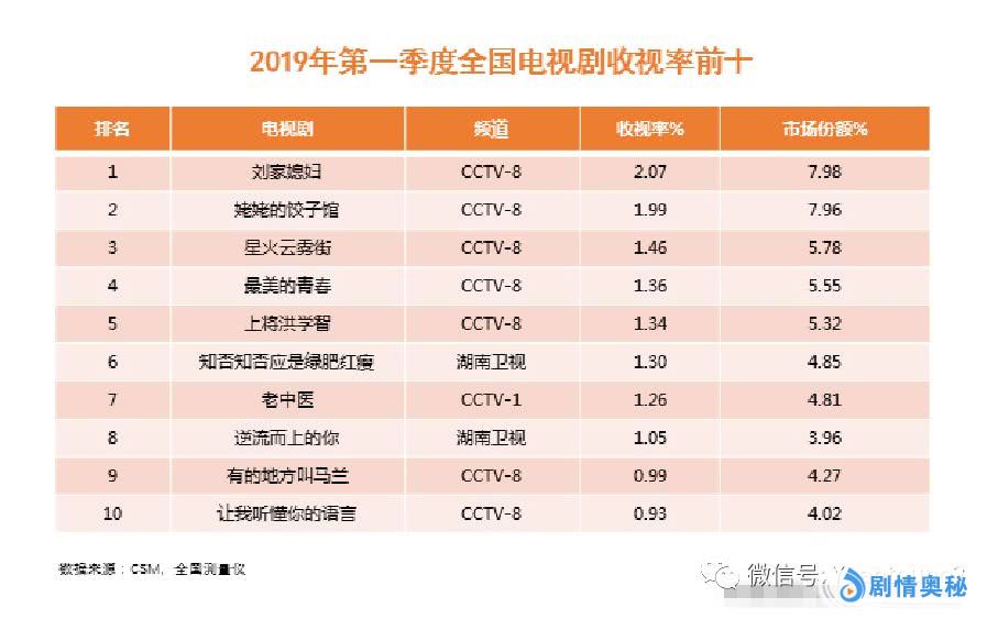 谈及电视剧《都挺好》,想必资深剧迷并不陌生,该剧于3月1日热播,在3月25日收官,不仅收视率低开高走,口碑上更是一度获得观众好评如潮。而且剧中姚晨、郭京飞、倪大红等人的实力演绎同样为观众留下了深刻印象。但是,在近期由知名数据统计网CSM提供的一组数据中显示,在过去一个季度里,全国电视剧收视率排行榜前十中,《都挺好》居然无缘遗憾落榜,而且赵丽颖主演的古代社会家庭题材电视《知否》也只能排在第六,更令人吃惊的排在第一的它除了获得可观的收视率,在口碑以及剧集质量上显然是备受质疑的。下面,就跟随小编来简单看下第一季度全国电视剧收视率前十中都有哪几部剧吧!