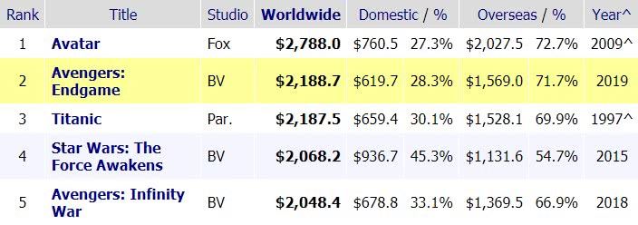 正式超越《泰坦尼克号》!《复联4》能“双杀”卡神吗?