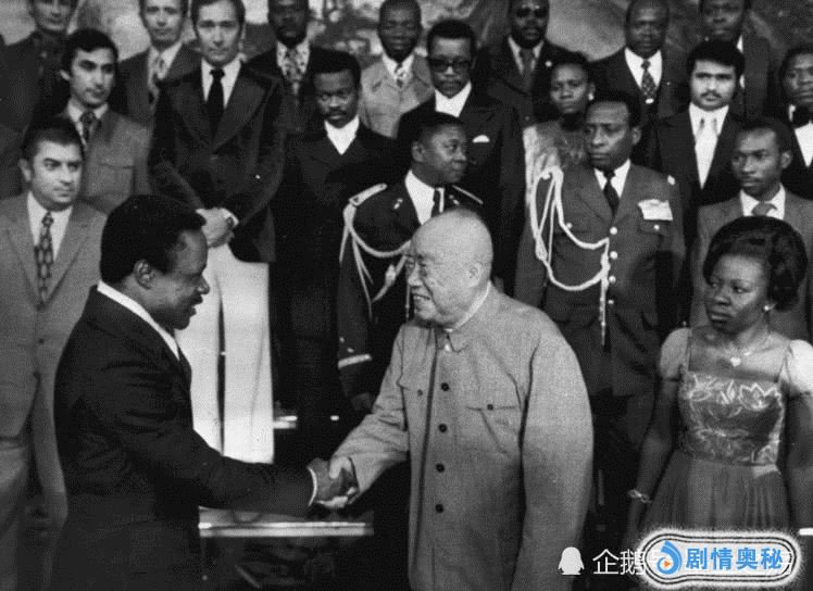 1975年6月27日,朱德会见加蓬共和国总统哈吉·奥马尔·邦戈。