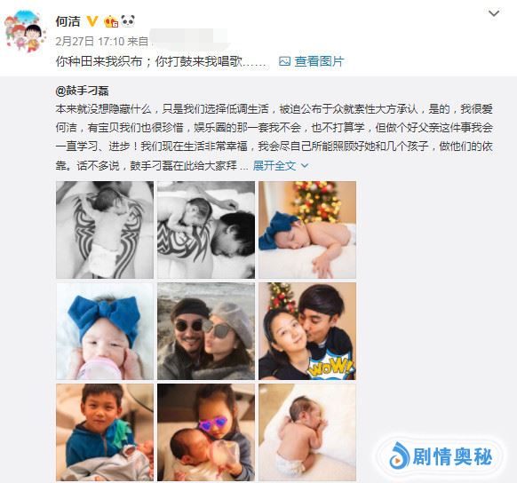 2018年底何洁逐渐淡出公众视野,在2019年2月27日,何洁也是公布好消息,宣布她和刁磊在一起,而且还为其生下一子,这样的一家五口也是格外甜蜜。