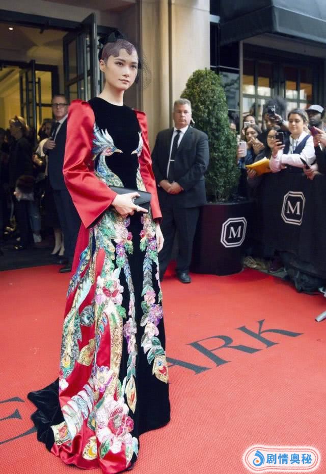 李宇春身着拼色天鹅绒长裙出席,精美的孔雀刺绣,配以紫色手推波浪头,巧妙地将东方戏曲元素与西方宫廷风格糅合一体,让一向颇为中性化的她,展现出一种独特的华丽质感。