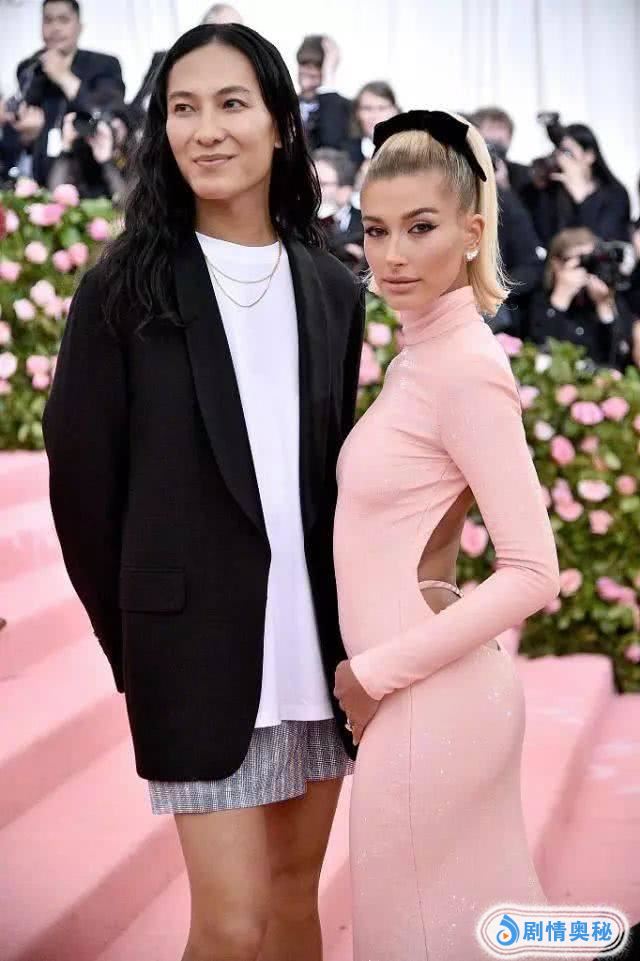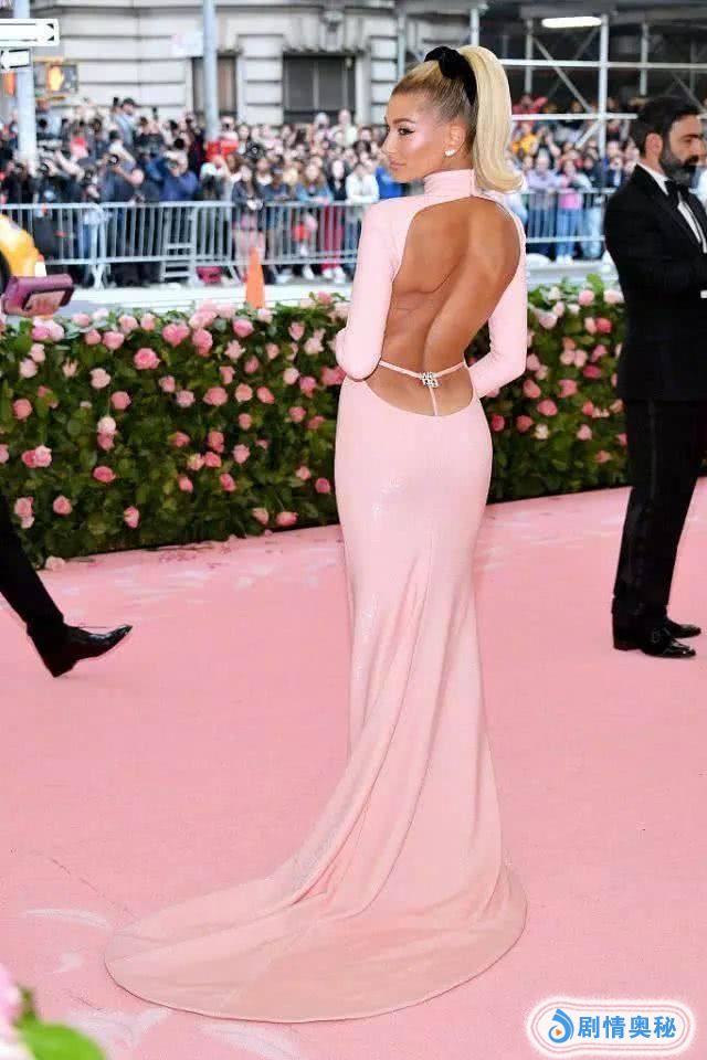 贾斯汀·比伯的妻子海莉这回落了单,只得与设计师王大仁一起出席。嫩粉色的紧身拖地长裙非常显身材,大露背的设计也很性感,就是衬的海莉太黑了!
