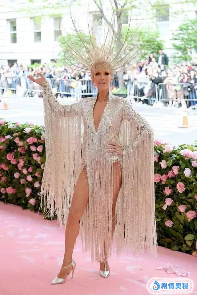 歌后席琳·迪翁身穿一袭银金色流苏装,超低胸、高开叉的设计,让其尽显好身材,而造型昂扬的头饰则提升了整体气势,非常带感。据悉这套Oscar de la Renta的衣服重达22磅,近10公斤!