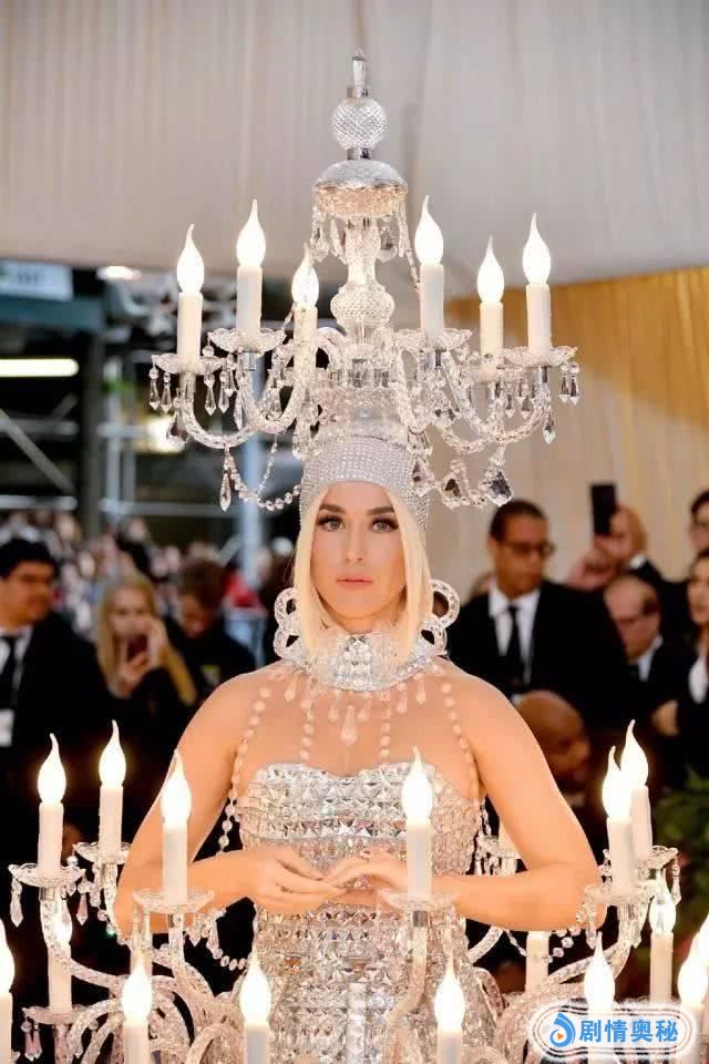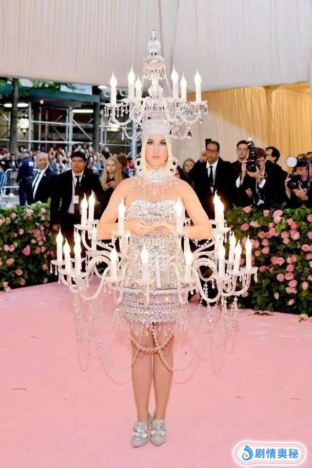 相较之下,水果姐这一身“水晶灯”装就好看多了,夸张、梦幻的造型不仅呼应了主题,还将水果姐的好身材尽显无疑。