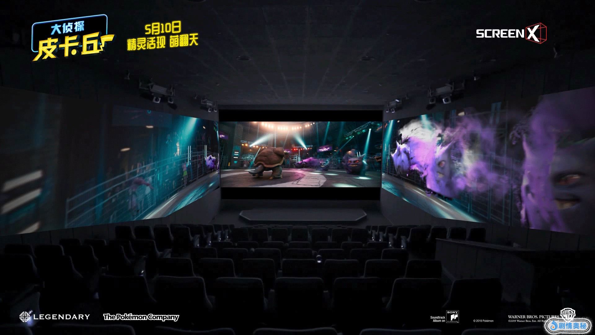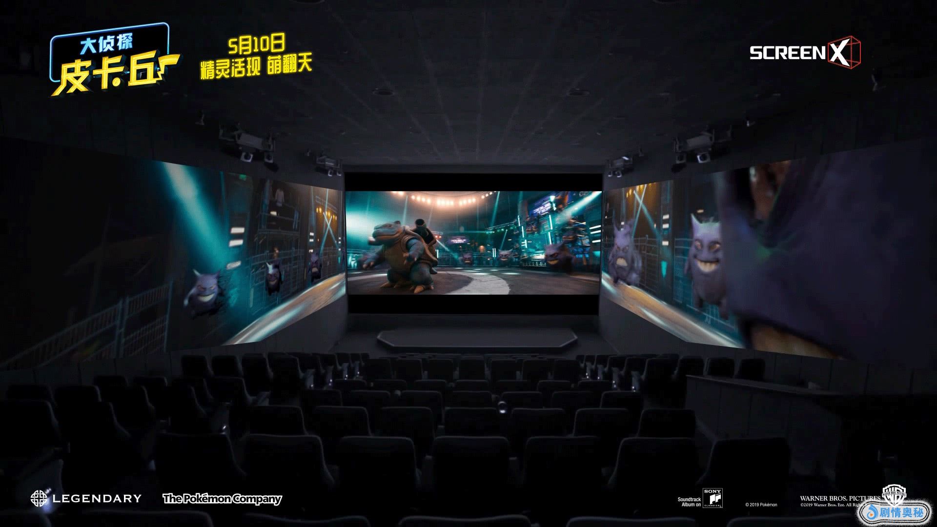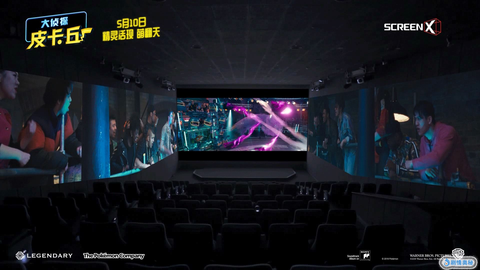 由美国传奇影业、华纳兄弟影片公司联合出品的好莱坞真人电影《大侦探皮卡丘》将于5月10日登陆全国4DX、ScreenX、以及4DX with ScreenX 融合厅影院。日前惊喜曝光ScreenX版预告,在三面屏的展示下,精灵们在地下Club决斗场面高能对打的场面,显得格外的劲爆炫酷。