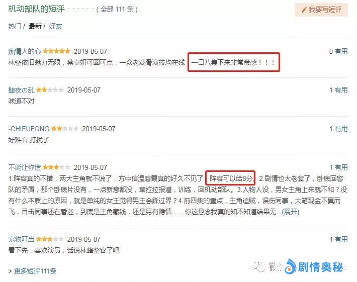 与此同时,在观众对林峯热度不减之际,在步入2019年之后,林峯再次携手新作《机动部队》强势来袭,更是赚足了观众眼球,而且从热播后观众反应程度以及口碑上来看,新剧《机动部队》不仅值得一看,更是值得一追到底。甚至在开播后,还有网友一度给予五星好评到:“林峯依旧魅力无限,蔡卓妍可圈可点,一众老戏骨演技均在线,一口八集下来非常带感!!!”