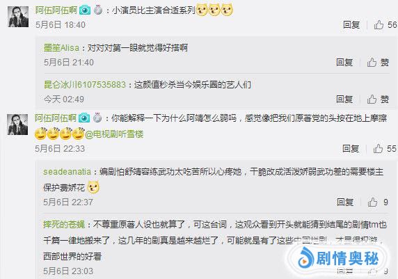 剧情魔改,对舒靖容人设不满的声音越来越多,身为女主扮演者的袁冰妍随后也回应了这个问题。“别急,很快就会开挂的!”以及《听雪楼》官博也很快跟上脚步表示三年脱变,马上“变身”。两者都预告道舒靖容在后期会有惊人的改变。而前期的无能或许只是为了之后的强大做铺垫?