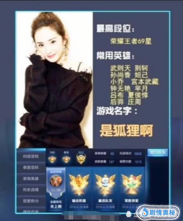 那就是杨幂,这个消息令人是多么的痛苦啊,总感觉杨幂每天除了工作,基本上都是没空玩游戏的,王者上了荣耀王者还是69颗星的,这样的战绩在明星之中也是九牛一毛了,大幂幂也是比较的全能,看到杨幂的段位,你们是不是也酸了呢!
