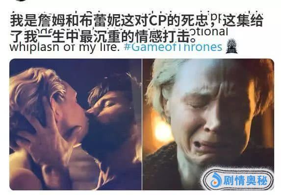 然后暴击来了,无情的詹姆没过多久就独自赶往君临救瑟后,布蕾妮强留未果,泣不成声。