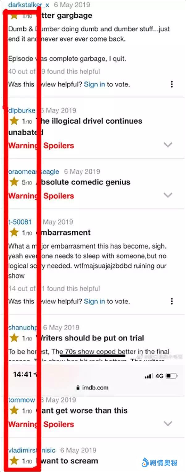 国外网友更是不断吐槽权游剧情崩塌,剧情毫无吸引力和紧张感。