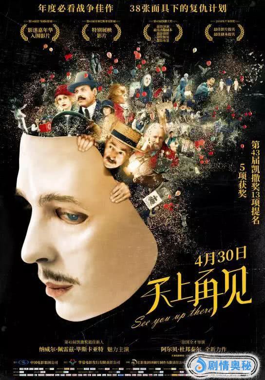 2018年,这部小说在电影的世界里再一次闪光:在第43届法国凯撒电影奖上,改编自这部小说的同名电影《天上再见》,拿下了13个奖项的提名,并最终收获了最佳导演、最佳改编剧本在内的5项大奖。