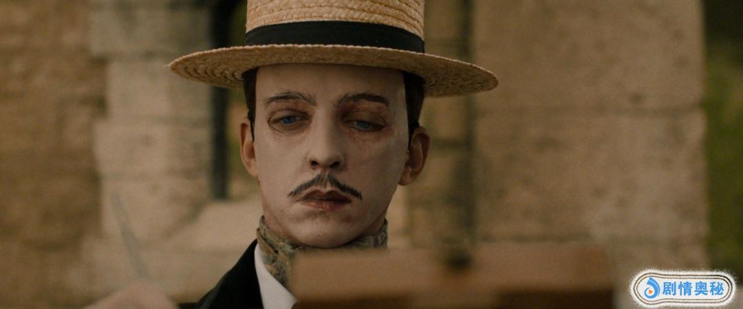 爱德华的38张面具就有一丝象征的意味。表面意义上,爱德华把自己受伤的下巴隐藏在了面具之下,去进行一个自我逃避与自我保护;