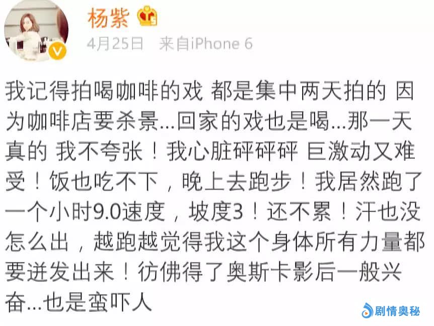 为了拍好“吃”戏,杨紫连续吃11个巧克力派,导致一天都没胃口,还老犯恶心。