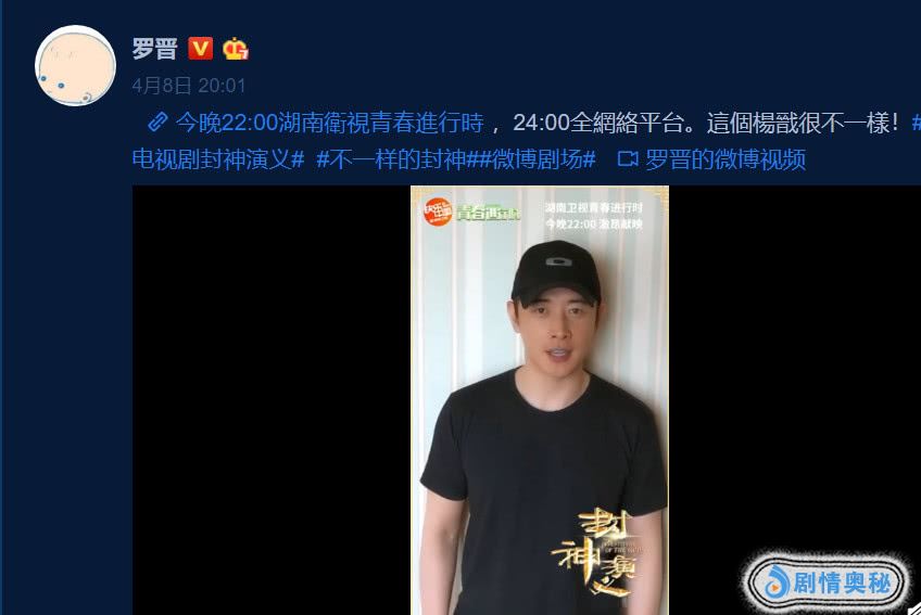 男主罗晋,也是在微博上宣传《封神演义》,说这个杨戬很不一样。确实不一样,这可能是有史以来最能哭鼻子的杨戬了。弹幕网友直呼唤唐嫣:唐嫣你老公哭成鬼了。哈哈,不过,还是要佩服罗晋的演技的。