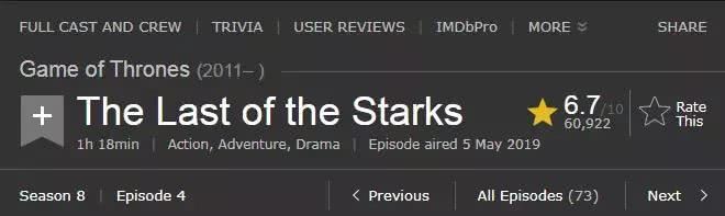 已经见到了最恢宏的场面和剧情,我们很难对后续的故事有更高的期待,虽然说“临冬城之战”在剧情、人设上不是完美的一集,