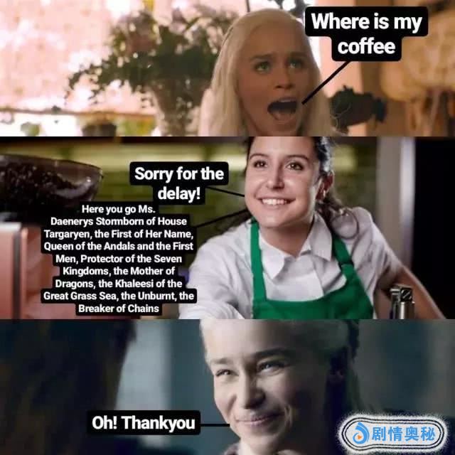 在庆功宴上,丹妮莉丝的座位旁边竟然出现了星巴克杯,