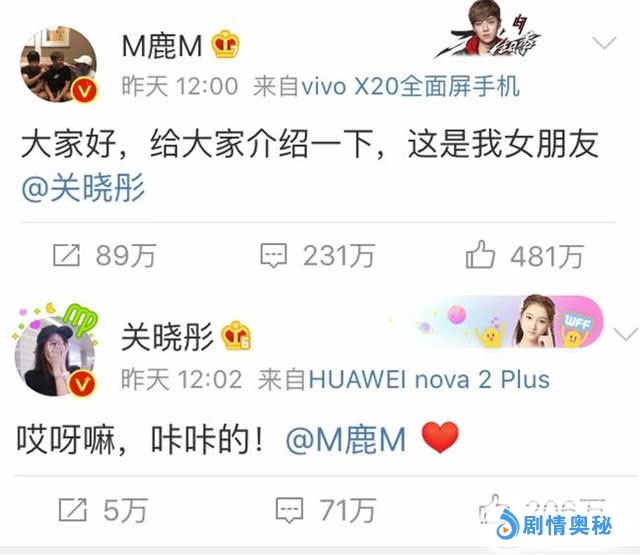 2017年10月8日做为当时的第一的顶级流量,突然宣布女友是关晓彤,完全没有在意外界如何看他,承受着舆论带来的所有好与坏,就这样大胆的宣布自己恋爱了。当时很多网友表示震惊、不理解甚至粉丝还脱粉了,但冷静下来都觉得鹿晗够爷们。