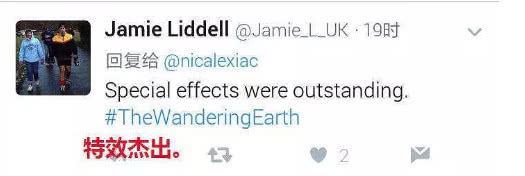 不过好在理智的观众都知道是怎么回事,国外的社交媒体上,看过电影的观众广泛赞誉,有观众言简意赅的赞赏电影特效杰出。这也是《流浪地球》引以为傲的地方,电影几乎都是由中国的特效团队完成制作,无论是电脑特效还是实景特效都非常出色。