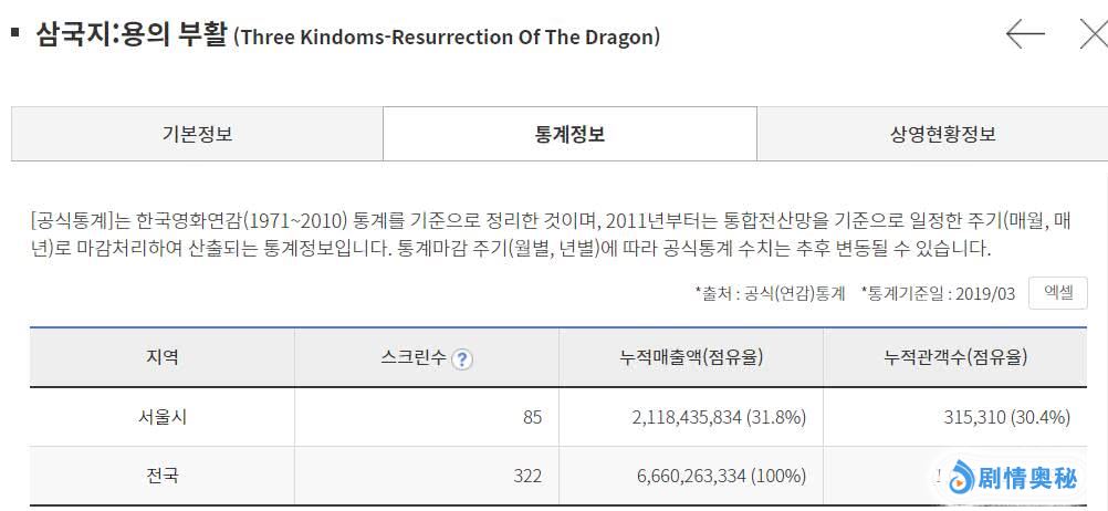 《三国之见龙卸甲》内地票房收得6958万,观影人次236万,排名年度17位,该成绩相当于现在10亿票房。韩国票房狂收4500万,只比内地少2458万含金量其实更高。韩国4900万人口对比中国人口数量那是没法比的,可观影人次只少136万,这一对比韩国人比内地观众更爱三国大片。