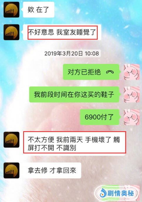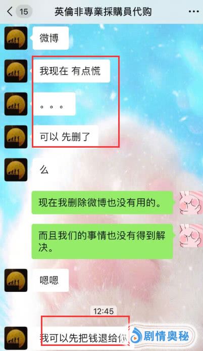 代购以各种理由不给张馨予发货,代购说室友睡觉了,说不方便,手机坏了屏幕打不开,拿手机去维修了。还说怕打扰张馨予休息!总之代购搬出来各种理由,就是不发货,也不还钱!张馨予最后也联系不到那个代购,对方似乎消失了。张馨予无奈只好发文怒斥!