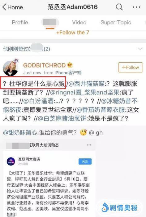 近日网上流传着范丞丞点赞杜华黑心肠微博的截图,起因是有某网友发文爆料说:乐华娱乐杜华希望组建产业联盟,呼吁艺人解约全行业封杀。这个消息引起了不小的轰动,网友议论纷纷。对于范丞丞点赞的事情,不少人分析可能是盗号或手滑。