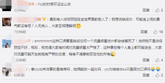 吃瓜群众吐槽:Ycy(杨超越)的时候可没这么说!看到有人说佟丽娅在全世界面前丢人了,我想说换成你,可能连上场的勇气都没有吧?人无完人,大家互相理解吧!这种口误要是换成任何一个流量明星估计都会被嘲死了,当然我不是说佟丽娅不好,相反,我觉得大家有时候对流量明星太严格了!拿ycy出来说事的是有病吗?她俩能放一起比吗?ycy为啥被diss只是因为口误吗?